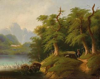Keywords: Eduard Boehm - Gebirgssee mit figürlicher Staffage.jpg 1900 oil canvas cm 55 5 68 5 accession number object history credit line exhibition history E Boehm ~ lower left signature http //www dorotheum com/auktionen/auktionstermine/aktuelle-auktionen/kataloge/list-lots/auktion/10996-olgemalde-und-aquarelle-des-19-jahrhunderts html Palais Dorotheum 12 02 2015 lot 213 PD-old-100 DEFAULTSORT Boehm Eduard; Landscape; Dorotheum 2015 Eduard Boehm Images from Dorotheum |
