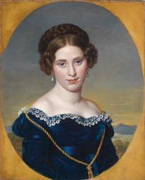 Keywords: Eduard Friedrich Leybold - Bildnis einer Dame vor Landschaftshintergrund (1822).jpg Eduard Friedrich Leybold de 1798-1879 Porträt einer jungen Frau / Bildnis einer Dame vor Landschaftshintergrund 1822 Oil on canvas cm 72 58 5 object history credit line Leybold pinx 1822 ~ center right signature and date accession number 1 http //www nagyhazi hu/english/kereses_gyors php Nagyházi Galéria és Aukcióház Budapest<br/>2 http //www dorotheum com/auktionen/auktion-10353-olgemalde-und-aquarelle-des-19-jahrhunderts html no_cache 1 source resultList offset 1 Palais Dorotheum 2013 12 11 Lot Nr 258 PD-old-100 Eduard Friedrich Leybold 19th-century portrait paintings location missing 1822 19th-century portrait paintings of unidentified women 1822 1822 oil on canvas paintings Portrait 1822 portrait paintings from Germany 19th-century oil oval portraits of women at bust length 1822 Blue clothing in art male 1822 Females with pearl earrings in art 1822 Images from Dorotheum |
