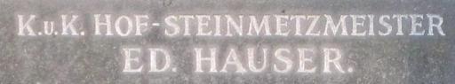 Keywords: Eduard Hauser k-u-k Steinmetzmeister.jpg en Vienna Zentralfriedhof inscription of the stonemason Eduard Hauser on a grave de Wien Zentralfriedhof Inschrift des Steinmetzmeisters Eduard Hauser auf einem Grabstein own Walter Anton 2009-05-03 Signs in Vienna Stonemasons German inscriptions in Austria |
