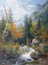 Keywords: Eduard Leonhardi - Ein Bach in einer waldigen Landschaft.jpg Eduard Leonhardi 1828-1905 1905 Technique oil canvas cm 64 88 object history credit line accession number http //www arcadja com/auctions/de/private/leonhardi_eduard_emil_august/kunstwerken/17212/0/ Auktionshaus Stahl via ARCADJA auction results PD-old-auto-1923 1905 Eduard Leonhardi Paintings of the German Alps 1900s landscape paintings Images from Auktionshaus Stahl |