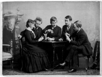 Keywords: edvard grieg edvardgrieg vintage black and white blackandwhite historic norway blackandwhite monochrome black and white Artist: unknown Date/place: Christmas 1887, Leipzig Subject: Edvard and Nina Grieg playing carts with three friends. From the left: Nina Grieg, Edvard Grieg, Johan Halvorsen, Frederik Delius og Christian Sinding. Medium: photographic positive, B&W Notes: none Persistent URL: Original belongs to the Edvard Grieg Archives at Bergen Public Library Original reference: EGM0096 Artist: unknown Date/place: Christmas 1887, Leipzig Subject: Edvard and Nina Grieg playing carts with three friends. From the left: Nina Grieg, Edvard Grieg, Johan Halvorsen, Frederik Delius og Christian Sinding. Medium: photographic positive, B&W Notes: none Persistent URL: Original belongs to the Edvard Grieg Archives at Bergen Public Library Original reference: EGM0096 |
