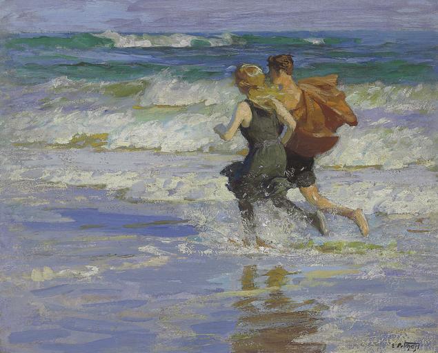 | Keywords: Edward Henry Potthast - At the Beach (c.1918).jpg Artwork Creator Edward Henry Potthast 1918 oil on canvas cm 61 76 2 accession number object history credit line exhibition history E Potthast ~ lower right signature christies online 5073658 2003 78 New York 21 May 2008 PD-old-auto-1923 1927 Edward Henry Potthast |