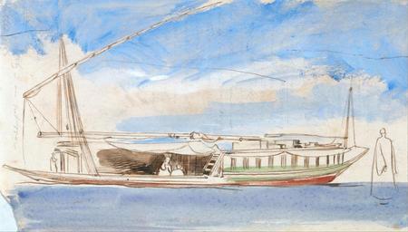| Keywords: Edward Lear - Boat on the Nile - Google Art Project.jpg inscribed in brown red ink lower left 15 January 1854 4 1/2 P M Sea blue red sky above okr - ref West x faint dusty lilac ; in brown-red ink lower right 75 ; Verso inscribed in balck ink upper center 16 uppermost ; in graphite lower center 68 Not on View Watercolor with pen in brown ink over graphite on moderately thick rough beige wove paper sky water river riverbank structure single built work sail landscape marine art boat special url_id _gGCDRhYFYJK8w PD-old-100-1923 1888 Egypt by Edward Lear Nile in art Google Art Project works by Edward Lear 1854 in Egypt Egyptian feluccas in art |