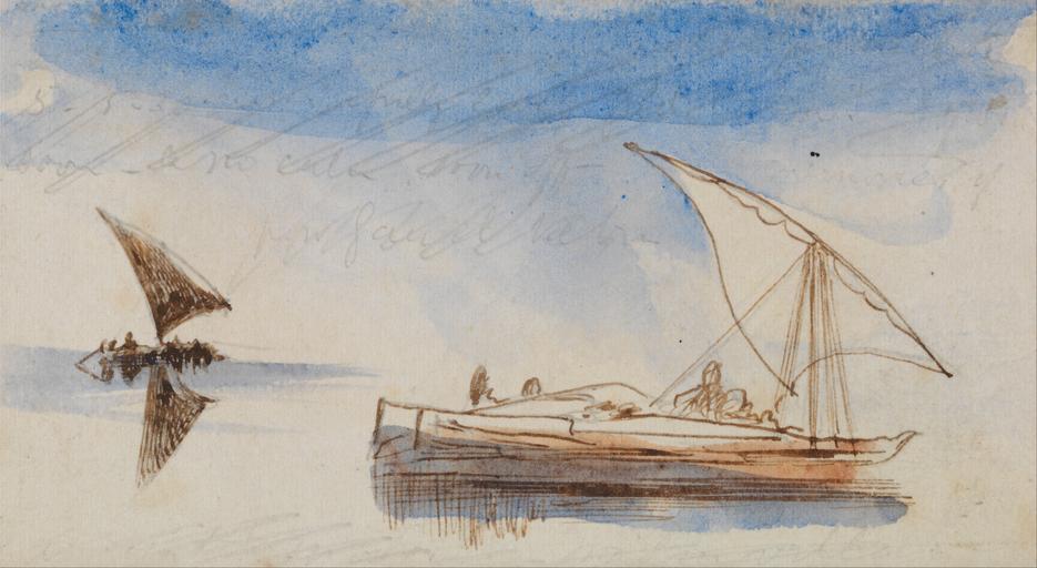 | Keywords: Edward Lear - Boats on the Nile - Google Art Project (2421431).jpg Verso in graphite center 149 up Lowest middle Not on View Watercolor with pen in brown ink over graphite on medium slightly textured cream wove paper sky water river sails studies visual works marine art boats special url_id pQGOyXhUQ8hSdw PD-old-100-1923 1888 Egypt by Edward Lear Nile in art Google Art Project works by Edward Lear | ||||