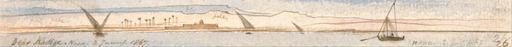 | Keywords: Edward Lear - Deir Kadige, noon, January 2, 1867 (26) - Google Art Project.jpg inscribed in brown ink lower left Deir Kadige noon 2 Jany 1867 ; in brown ink lower right 26 ; Verso in graphite center 5 up middle Not on View Watercolor with pen in brown ink over graphite on moderately thick rough cream wove paper sky palm trees water river sails marine art boats special url_id TQESMETdIAjsHw PD-old-100-1923 1888 Egypt by Edward Lear Google Art Project works by Edward Lear | ||||
