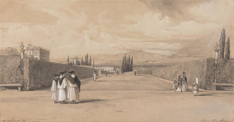 Keywords: Edward Lear - The Gardens of the Villa Albani - Google Art Project.jpg Inscribed in artist's hand in pen and black ink lower left Edward Lear del 1840 ; in artist's hand in pen and black ink lower right Roma Villa Albani ; inscribed on back in graphite center right 5 Inscription _Signed_and_Dated Signed in pen and black ink lower left Edward Lear del 1840 Not on View Graphite black chalk and white gouache on medium slightly textured brown wove paper walls columns trees gardens landscape special url_id ywEtJMuORwnZuw PD-old-100-1923 1888 Watercolor paintings by Edward Lear Google Art Project works by Edward Lear |