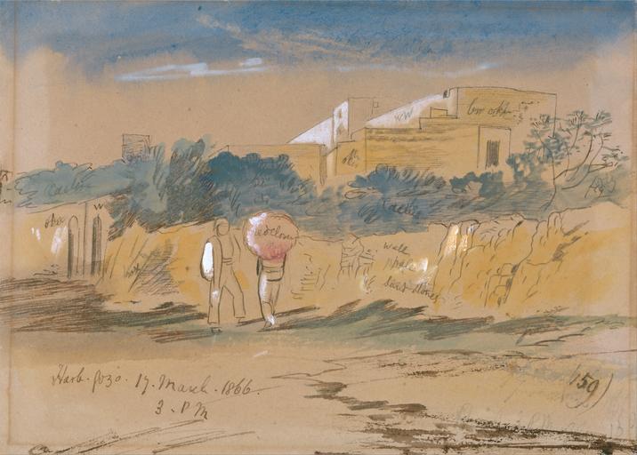 | Keywords: Edward Lear - Harb. Gozo - Google Art Project.jpg inscribed in brown ink lower left Harb Gozo 17 March 1866 3 PM ; in brown ink lower right 159 Not on View Watercolor with pen in brown ink and gouache over graphite on wove paper on moderately thick slightly textured cream wove paper mounted on medium slightly textured brown wove paper sky bushes rocks grass wall trees buildings figures representations genre subject special url_id bgEFjUL8fV13nQ PD-old-100-1923 1888 Malta by Edward Lear Google Art Project works by Edward Lear 1866 in Malta Għarb |