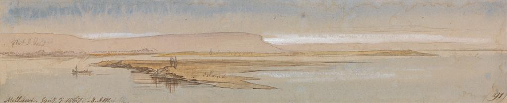 | Keywords: Edward Lear - Mellawi - Google Art Project.jpg inscribed in brown ink lower left mellawi Jany 7 1867 -8 AM ; in brown ink lower right 91 ; Verso in graphite center left 19 up Middle Not on View Watercolor with pen in brown ink and wihte gouache over graphite on moderately thick slightly textured gray wove paper sky water river island figures representations landscape boat special url_id ugEncpdvb7Yjhw PD-old-100-1923 1888 Egypt by Edward Lear Google Art Project works by Edward Lear | ||||