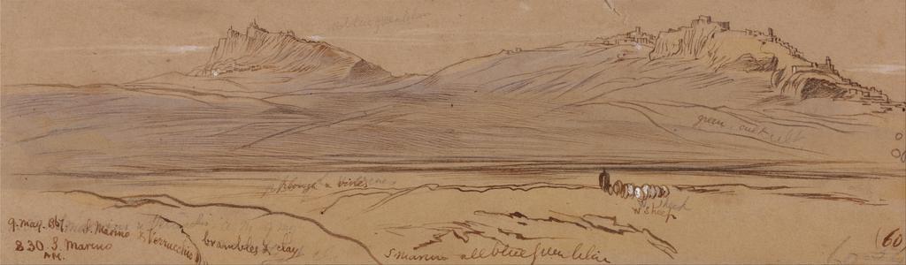Keywords: Edward Lear - San Marino - Google Art Project (2432172).jpg inscribed in brown ink lower left 9 May 1867 S Marino Verrucchio 8 30 S Marino AM in brown ink lower center s Marino all blue green lilac ; in brown ink lower right 60 ; Verso in graphite upper right 378 ; in graphite center right 219 Longwise ; in graphite lower right lowest Not on View Watercolor with pen in brown ink and white gouache over graphite on moderately thick slightly textured brown wove paper herd sky sheep mountains valleys landforms landscape special url_id bgFHi2KMiIdOJQ PD-old-100-1923 1888 Watercolor paintings by Edward Lear Google Art Project works by Edward Lear |