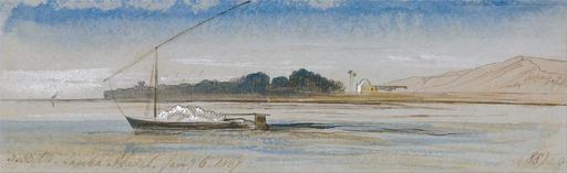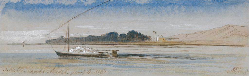 | Keywords: Edward Lear - Sheikh Abadeh - Google Art Project.jpg Inscribed in brown ink lower left 3 35 PM Sheekh Abadeh Jany 6 1867 ; in brown ink lower right 88 ; Verso in graphite 18 up Lowest Not on View Watercolor with pen in brown ink and gouache over graphite on thick moderately textured gray wove paper sky water trees marine art boat special url_id 1gH351fr0xAI1Q PD-old-100-1923 1888 Egypt by Edward Lear Google Art Project works by Edward Lear Egyptian feluccas in art | ||||