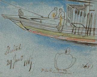 | Keywords: Edward Lear - Shelaal - Google Art Project (2433049).jpg inscribed in brown ink lower left Shelaal 29 Jany 1867 ; in brown ink lower right 268 Not on View Watercolor with pen in brown ink over graphite on thick moderately textured blue wove paper studies visual works figures representations genre subject boat special url_id YwGL_nxRyugYuQ PD-old-100-1923 1888 Egypt by Edward Lear Google Art Project works by Edward Lear Egyptian feluccas in art | ||||