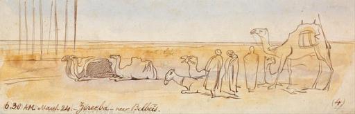 Keywords: Edward Lear - Zereeba, near Belbeis - Google Art Project.jpg inscribed in brown ink lower left 6 30AM March 24 - Zereeba- near Belbeis ; in brown ink lower right 4 ; Verso in graphite upper left 168 up Lowest ; in graphite upper right 348 Not on View Watercolor with pen in brown ink over graphite on medium slightly textured cream wove paper sky camels mammals sand trees turbans robes study visual work figures representations landscape special url_id QQG1g24dZniFSg PD-old-100-1923 1888 Egypt by Edward Lear Google Art Project works by Edward Lear |