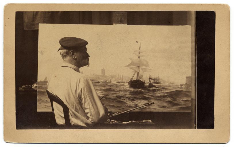 Keywords: smithsonian institution smithsonianinstitution portrait edward moran edwardmoran painter marine seascape painting sailing ship sailingship working artist workingartist painter at work painteratwork barco pintor retrato beret archives of american art archivesofamericanart picture frame Description: Moran seated in a side pose in front of a work in progress. Photographer unidentifed. Moran was a marine painter, New York, N.Y. Creator/Photographer: Unidentified photographer Medium: Black and white photographic print Dimensions: 12 cm x 19 cm Date: c. 1870 Persistent URL: www.aaa.si.edu/collections/images/detail/edward-moran-pai... Repository: Archives of American Art Accession number: AAA_miscphot_5622 Description: Moran seated in a side pose in front of a work in progress. Photographer unidentifed. Moran was a marine painter, New York, N.Y. Creator/Photographer: Unidentified photographer Medium: Black and white photographic print Dimensions: 12 cm x 19 cm Date: c. 1870 Persistent URL: www.aaa.si.edu/collections/images/detail/edward-moran-pai... Repository: Archives of American Art Accession number: AAA_miscphot_5622 |
