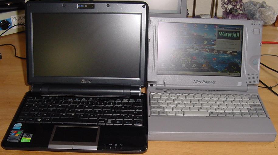 | Keywords: EEEPC901 LIBRETTO100.JPG en This picture shows the ASUS eeePC 901 besides the Toshiba Libretto 100CT which was already one of the bigger ones in the Libretto series de Das Bild zeigt einen Größenvergleich zwischen dem heute bekannteren ASUS eeePC 901 und dem Toshiba Libretto 100CT welcher in seinen Maßen noch einer der größeren der Librettoserie war own Freakedenough 2011-04-28 Cc-zero Toshiba Libretto | ||||