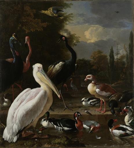 Keywords: Een pelikaan en ander gevogelte bij een waterbassin, bekend als ‘Het drijvend veertje’ Rijksmuseum SK-A-175.jpeg nl Een pelikaan en ander gevogelte bij een waterbassin in een tuin in een voorstelling bekend als 'Het drijvend veertje' Op de voorgrond de pelikaan in het water verschillende soorten eenden links een kasuaris een flamingo en een Afrikaanse kroonkraanvogel In de lucht en in de verte nog verschillende andere vogels ; Melchior d ™Hondecoeter 1636 “1695 olieverf op doek ca 1680 drager Height cm 159 drager Width cm 144 exhibition history 2010-2011 Intolerance Berlin 2009-2009 Kunst- en vliegwerk De vogelstukken van Melchior d'Hondecoeter Amsterdam 2008-2009 The Art of Flying Bird pieces by Melchior d'Hondecoeter Amsterdam 2008-2009 Hondecoeter Amsterdam Institution Rijksmuseum Technique oil canvas object history Acquisition 1799 object type Potential derivatives exist check http //commons wikimedia org/w/index php search Rijksmuseum+SK-A-175 this search PD-US PD-old-100 Data and photography rights All data and all images made available through the API are either in the public domain or are subject to a CC0 license https //www rijksmuseum nl/en/api/terms-and-conditions-of-use cc-zero place of creation J Stumpel in Kunstschrift 4 1995 p 39-41P J J van Thiel in Oud Holland 95 1981 p 208 nr 172E Sterbetz Documents dans les arts plastiques pour l'étude de la migration des bernaches a cou roux in Bulletin du Musée Hongrois des Beaux-Arts Budapest nr 50 1978 p 76 http //www rijksmuseum nl/collectie/SK-A-175 Een pelikaan en ander gevogelte bij een waterbassin bekend als ˜Het drijvend veertje ™ Uploaded with GWToolset Een pelikaan en ander gevogelte bij een waterbassin bekend als ˜Het drijvend veertje ™ Rijksmuseum SK-A-175 http //www rijksmuseum nl/media/assets/SK-A-175 Images uploaded by Fæ Images from the Rijksmuseum Paintings in the Rijksmuseum Amsterdam |