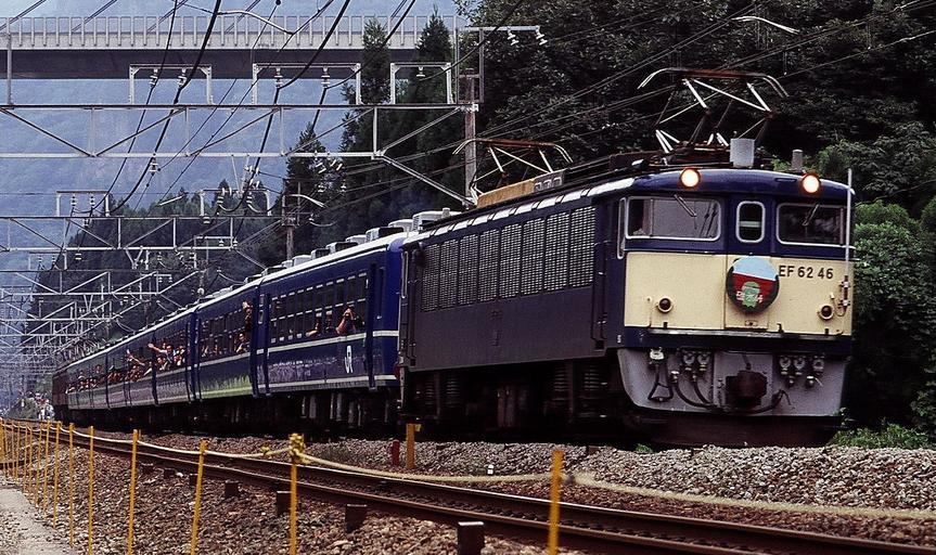 Keywords: EF62 usui.JPG JR East Class EF62 electric locomotive EF62 46 hauling a special farewell tour ja 碓氷峠を登る下り12系客車 結の さよなら碓氷峠号 Own toshinori baba 1997 JNR EF62 1997 in rail transport in Japan
