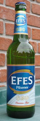 Keywords: EfesPilsener.jpg en A bottle of Efes Pilsener beer own Miguel Andrade 2013-08-18 Beer bottles green glass Beers of Turkey Pilsner Cc-zero Efes Beverage Group
