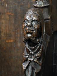 Keywords: Eglise Orbais-l'Abbaye 13 02 2011 stalles 08.jpg fr Stalles de l'église Saint-Pierre-et-Saint-Paul à Orbais l'Abbaye sculptées par Jean Huilier et offertes en 1520 par Louis de Bourbon abbé du couvent détail d'un accoudoir own Vassil 2011-02-13 Cc-zero Choir stalls of abbatiale Saint-Pierre d'Orbais-l'Abbaye Faces of men in art |