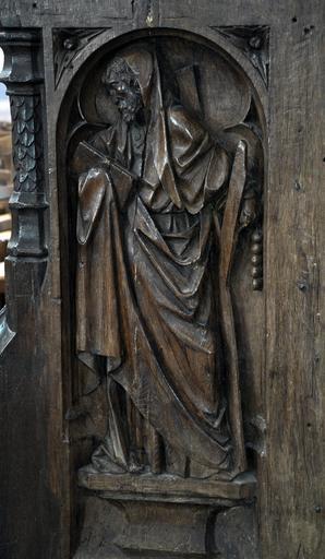 | Keywords: Eglise Orbais-l'Abbaye 2011 stalles jouee 5.jpg fr Stalles de l'église Saint-Pierre-et-Saint-Paul à Orbais l'Abbaye sculptées par Jean Huilier et offertes en 1520 par Louis de Bourbon abbé du couvent Une jouée Saint-André own Vassil 2011-02-13 Cc-zero Choir stalls of abbatiale Saint-Pierre d'Orbais-l'Abbaye |