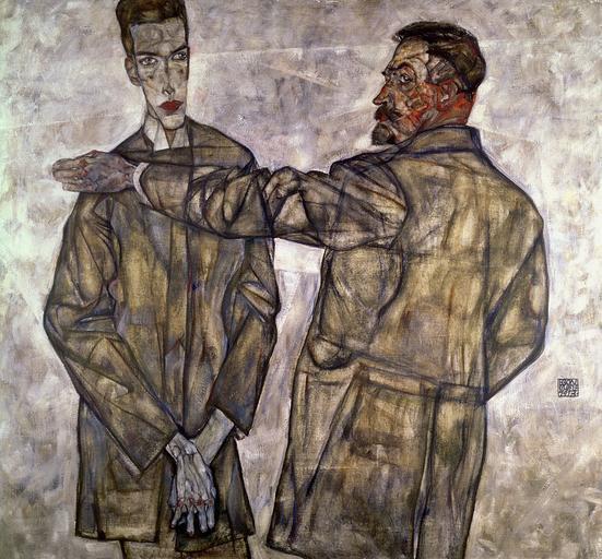 Keywords: Egon Schiele - Doppelbildnis Heinrich und Otto Benesch.jpg Artwork Creator Egon Schiele 1913 oil canvas cm 121 130 institution Lentos Kunstmuseum Linz accession number 12 http //sammlung lentos at 8088/mboxlentos/showfilingcard m-box setmgrname mboxobj mobble a 3A3 3A i 3A0 3Bi 3A0 3Bi 3A1 3Bi 3A34 3Bi 3A2 3Bi 3A24714 3B m-box_phpsessid 43f8f565236892c6e9a4f9b6305a475c Lentos Kunstmuseum Linz object history credit line Egon Schiele 1913 ~ lower right signature and date am rechten Rand unteres Drittel Egon Schiele 1913 41186 PD-old-auto-1923 1918 Paintings by Egon Schiele Paintings in the Lentos Kunstmuseum Linz 1910s portrait paintings Portrait paintings of men Expressionist paintings 1913 paintings |