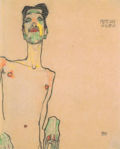 MAKE A MEME View Large Image Egon Schiele - Mime van Osen - 1910.jpeg Mime van Osen charcoal watercolor 37 8 x 29 7 cm Neue Galerie Graz repro from artbook 1910 Creator Egon Schiele PD-old-auto 1918 Other versions Paintings by Egon Schiele