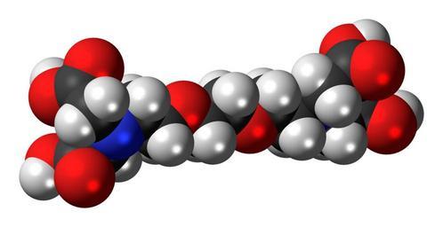 Keywords: EGTA 3D spacefill.png Space-filling model of the EGTA ethylene glycol tetraacetic acid molecule a chelating agent This image shows the electrically neutral form Colour code 505050 Carbon C black<br> F0F0F0 Hydrogen H white<br> F51E1E Oxygen O red<br> 3C50FA Nitrogen N blue<br> 2011-07-03 own DS Visualizer Jynto talk Neutral form ball-and-stick version Zwitterion ball-and-stick version Zwitterion space-filling version cc-zero Images by Jynto Space-filling models EGTA Tertiary amines Ethers chelating agents |