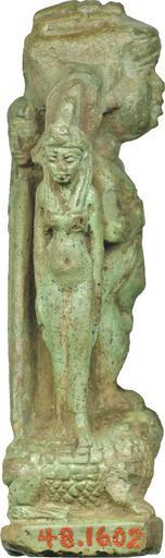 | Keywords: Egyptian - Amulet of Pataikos on Crocodiles - Walters 481602 - Right.jpg This dwarf-like protective deity was very popular in ancient Egypt; amulets in the shape of this god were particularly popular from the Third Intermediate period The Greek name Pataikos comes from a passage in the writings of Herodotus ca 5th century BC who used this term to describe a Phoenician protective dwarf-like image The Egyptian Pataikos is a special manifestation of the creator god Ptah and the dwarf-like appearance symbolizes his magical power This amulet displays a very special variant of Pataikos representations which links this god to images of the juvenile god Horus standing on crocodiles Here Pataikos also stands on two antithetically arranged crocodiles He has snakes in his hands and a scarab on top of his head On each of his shoulders was once a falcon both of which are now broken off The goddesses Isis and Nephthys are standing at his sides and at his back another representation of Isis protects the Pataikos figure with her wings In this special arrangement the magical power of Pataikos is linked to the Horus myth late 4th-early 3rd century BC early Greco-Roman Egyptian faience with green glaze cm 7 93 4 23 2 02 accession number 48 1602 1655 Dikran Kelekian Paris and New York Henry Walters city Baltimore Walters Art Museum Henry Walters Acquired by Henry Walters 1929 Faience The Colors of the Heavens The Walters Art Museum Baltimore; The Walters Art Museum Baltimore 2003-2004 Daily Magic in Ancient Egypt The Walters Art Museum Baltimore 2006-2007 place of origin Egypt Walters Art Museum license Ancient Egyptian amulets in the Walters Art Museum Pataikos |