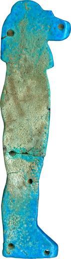 | Keywords: Egyptian - Amuletic Figure of Hapy, Son of Horus - Walters 481641 - Reverse.jpg This faience amulet represents Hapy the baboon-headed son of Horus There are four sons of Horus and this amulet is part of a set of four Walters 48 1638-1641 The sons of Horus protected he vital organs of the body after mummification The image is that of a baboon-headed mummiform human The figure faces proper right It is composed of blue glazed faience with the details picked out in purple/black manganese The figure wears a tripartite wig but unlike the other three in this set he does not wear a broad collar There are five diagonal stripes of manganese across the mummiform body representing the mummy wrappings or braces A horizontal fracture at knee level separated the amulet into two fragments which have since been reattached Numerous funerary amulets were usually placed among the many layers of linen strips used to wrap mummies Specific amulets along with their required position on the body are listed in funerary texts such as The Book of the Dead Amulets were sometimes sewn directly onto the wrappings or could be incorporated into a bead net shroud covering the mummy These amulets have been modeled with a flat underside and are pierced by tiny holes around the edges for attachment ca 750 650 BC Third Intermediate Egyptian faience with blue and black glaze cm 9 2 5 0 7 accession number 48 1641 4506 Henry Walters Baltimore date and mode of acquisition unknown Walters Art Museum Henry Walters Acquired by Henry Walters Jewelry - Ancient to Modern The Walters Art Gallery Baltimore 1979-1980 Objects of Adornment Five Thousand Years of Jewelry from the Walters Art Gallery Baltimore Cooper-Hewitt National Design Museum New York; Chrysler Museum of Art Norfolk; Carnegie Museum of Art Pittsburgh; San Antonio Museum of Art San Antonio; Philbrook Museum of Art Tulsa; Honolulu Academy of Arts Honolulu; New Orleans Museum of Art New Orleans; Milwaukee Art Museum Milwaukee; Minneapolis Institute of Arts Minneapolis; Toledo Museum of Art Toledo; The John and Mable Ringling Museum of Art Sarasota 1984-1987 Jewelry from the Walters Art Museum and the Zucker Family Collection The Walters Art Gallery Baltimore 1987 Faience The Colors of the Heavens The Walters Art Museum Baltimore; The Walters Art Museum Baltimore 2003-2004 place of origin Egypt Walters Art Museum license Ancient Egyptian amulets in the Walters Art Museum Hapi Ancient Egyptian faience in the Walters Art Museum Media contributed by the Walters Art Museum needs category review |