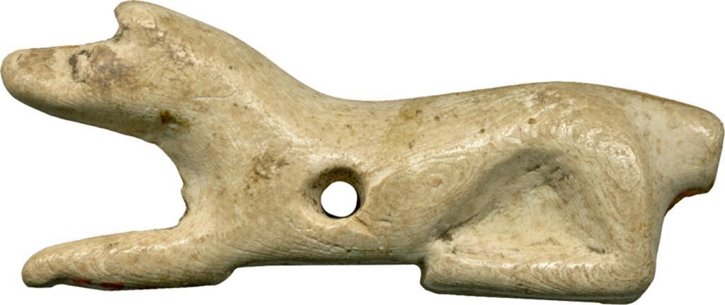 Keywords: Egyptian - Dog - Walters 71523 - Left.jpg This figure of a reclining short-tailed dog seluki with ears perked is schematically carved The eyes are shown in relief The piece is perforated horizontally through the belly; another hole leads from this perforation to the base 2nd half 4th millennium BC Predynastic Egypt hippopotamus ivory cm 4 4 1 29 0 48 accession number 71 523 21078 MacGregor Collection date and mode of acquisition unknown lot 708 Dikran Kelekian New York and Paris date and mode of acquisition unknown Henry Walters Baltimore 1923 mode of acquisition unknown Walters Art Museum Henry Walters Acquired by Henry Walters 1923 place of origin Egypt Walters Art Museum license Egyptian predynastic art in the Walters Art Museum |