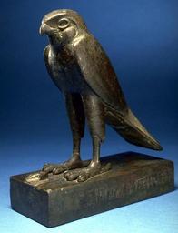 Keywords: Egyptian - Falcon Reliquary - Walters 54547 - Three Quarter.jpg This statuette likely dedicated to the falcon-god Horus is missing its crown and eye inlays The structure of the feathers is carefully incised The base is inscribed with texts of adoration and prayer Examination through the hole in the head revealed bird bones that had been wrapped in linen and placed inside through a trap door between the statuette's legs A neutron-induced radiograph also reveals the presence of bones inside the reliquary ca 600 350 BC Late Period bronze bird bones linen cm 22 7 accession number 54 547 3683 Henry Walters Baltimore date and mode of acquisition unknown Walters Art Museum Henry Walters Acquired by Henry Walters Translation To be recited Osiris-Wennefer the Great God Lord of Heaven Royal Youth wearing the white crown who went forth from the body of the two uraeus serpents the uraeus is upon the great forehead of the one who has dwelt in the body of Nut To be recited Osiris who rules in the west may he give life health long lifetime and a long and good age to Iwer-hotep-her-nebef son of Ren-ef-hesy To Arrest the Ravages of Time Caring for Art at the Walters The Walters Art Gallery Baltimore 1996 place of origin Egypt Walters Art Museum license Ancient Egyptian statues in the Walters Art Museum Falcons in Ancient Egypt Statues of Horus Statues of the Egyptian late period Egyptian-cnḫ wḏ3 snb Egyptian mummies of falcons Egyptian linen |