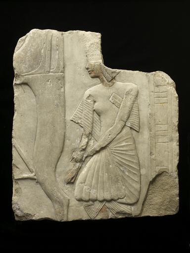 | Keywords: Egyptian - Fragment of a Tomb Relief - Walters 22128.jpg Deriving from one of the most beautifully sculpted New Kingdom tombs this small relief exemplifies the best artwork of the era of Tutankhamun 1336-1327 BC A scribe of the general and later king Horemheb is shown standing behind a chair which is represented on a scale far larger than he Though the scribe's social status is obviously below that of the tomb's owner his curling echeloned wig and his upturned nose are characteristic features favored in the period immediately following Akhenaten's death in 1336 as is the somewhat slight body which is punctuated by a spreading belly and hips The delicately carved and clearly defined pleating of the scribe's garments reveals that the body type is a deliberate fashion and not artistic ineptitude The bureaucrat grasps his far wrist with his near hand in a gesture of deference to the unseen tomb owner seated before him Tucked under his near armpit is the man's scribal palette which identifies his profession despite the absence of any inscription The vertical bar behind the official indicates the end of this composition ca 1325 BC limestone traces of paint cm 41 9 36 7 accession number 22 128 4908 Dikran Kelekian New York or Paris Henry Walters city Baltimore Walters Art Museum Henry Walters Acquired by Henry Walters 1925 place of origin Saqqara Egypt Walters Art Museum license Ancient Egyptian reliefs in the Walters Art Museum Reliefs of the 18th dynasty of Egypt Ancient Egyptian art from Saqqara Media contributed by the Walters Art Museum needs category review |