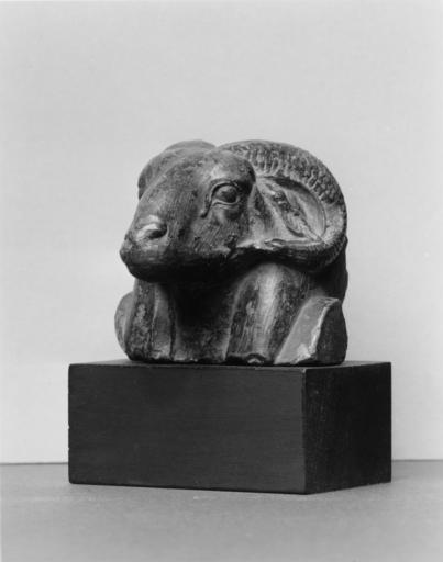 | Keywords: Egyptian - Head of Ram - Walters 22309 - Three Quarter.jpg This carved ram has a darkened surface and a flat back The under edge is finished date limestone cm 7 accession number 22 309 16867 Ch Haviland date and mode of acquisition unknown Haviland Sale Paris 1922 pt IV p 9 no 20 Dikran Kelekian New York and Paris date and mode of acquisiton unknown Henry Walters city Baltimore Walters Art Museum Henry Walters Acquired by Henry Walters 1928 Number On old label 27; Number On old label D K 2980 place of origin Egypt Walters Art Museum license Ancient Egyptian statues in the Walters Art Museum |