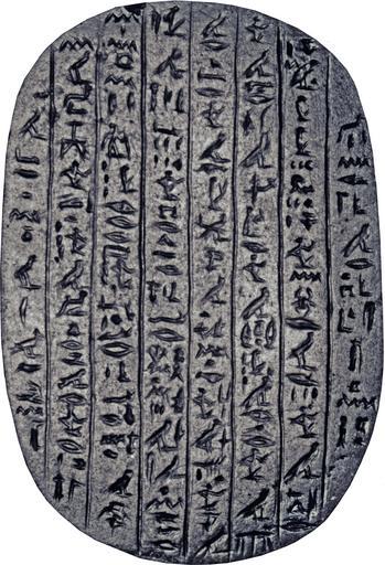 Keywords: Egyptian - Heart Scarab - Walters 4281 - Bottom.jpg This serpentine scarab has a flat underside with a vertically arranged inscription with the text from spell 30B of the Book of the Dead The back of the scarab has a detailed design with a polished surface and almost balanced proportions The workmanship is good and the piece is carefully made This scarab functioned as an independent user individualized funerary amulet with a renewal connotation and supportive function for the deceased in the Court of the Dead between 1070 736 BC Third Intermediate black-brown serpentine cm 2 7 4 4 6 3 accession number 42 81 27145 Henry Walters Baltimore date and mode of acquisition unknown Walters Art Museum Henry Walters Acquired by Henry Walters Translation Recitation of Osiris the head of beverages depot Pa-en-Ptah / Heart that I received from my mother heart that I received from my mother heart of my different ages do not stand up against / me as witness; do not contradict me in the court; do nothing against me in front of the deities; / do not treat me with hostility in front of the Keeper of the Balance You are my Ka life-force which is in my body; the creator / who makes the limbs of my body whole; you may come out to the beautiful place which is there prepared for me Do not cause my name / to stink in the presence of the members of the court who make people to resurrected at the beautiful place Excellent is it for the posers; a pleasure is it / for the judge Do not speak lies against me beside the great god / See you are elected to exist as a justified one place of origin Egypt Walters Art Museum license Ancient Egyptian scarabs in the Walters Art Museum Hieroglyphs on scarabs Heart scarabs Seth tool hieroglyph Man with staff hieroglyph |