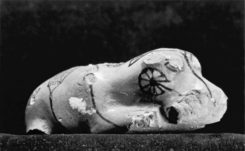 Keywords: Egyptian - Hippopotamus with Aquatic Flower Decoration - Walters 48401.jpg The hippopotamus is an animal which was thought to belong to Seth the god of the wild and powerful nature The animal was regarded as a nuisance and an evil doer On the other hand the hippopotamus is also an animal of the Nile and therefore represents fertility and regeneration The hippopotamus figures of the Middle and early New Kingdom which are decorated with images of papyrus plants may refer to the fertility aspect This example is of a hippopotamus in a lying posture with its head resting on its front legs The green-blue color symbolizes the fertile nature and the papyrus buds and blossoms represent the protective place of the papyrus-thicket ca 1850 1600 BC Middle Kingdom-Second Intermediate faience with blue glaze cm 14 1 accession number 48 401 21669 Dikran Kelekian Paris and New York Henry Walters city Baltimore Walters Art Museum Henry Walters Acquired by Henry Walters 1923 place of origin Egypt Walters Art Museum license Ancient Egyptian statuettes in the Walters Art Museum Ancient Egyptian faience in the Walters Art Museum Hippopotamus in ancient Egypt Media contributed by the Walters Art Museum needs category review |
