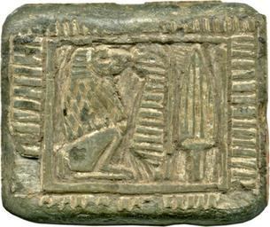 MAKE A MEME View Large Image Egyptian - Inscribed Bead - Walters 4287.jpg A flat rectangular bead made of grey steatite with a single worn perforation on the long axis The front is carved in relief showing a seated baboon a Maat-feather and a tree or a lotus bud A ...