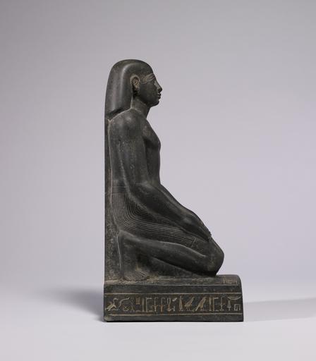 Keywords: Egyptian - Kneeling Figure of Hor-wedja - Walters 2279 - Right.jpg Hor-wedja was the son of Vizier Sasobek the highest-ranking official during the reign of King Psammetichus I Hor-wedja's son Meryptah commissioned this temple sculpture for him Hor-wedja kneels presenting only himself to his god He abases himself in the deity's presence but keeps his head erect expressing respect and confidence A hieroglyphic inscription gives the lineage and titles of Hor-wedja running in a horizontal band around the base in a line across the top of the base and in a single vertical column on the back pillar Hor-wedja kneels upon a rectangular base and his toes are splayed out in an unnatural way He wears a belted shendyt and a simple bag wig The wide width of the wig is common for the Saite Period The orientation of the wig onto the top of the back pillar is echoed in other sculptures from the 26th Dynasty through the reign of Apries As is characteristic for the Saite Period his image is quite idealized The body appears strong but the definition of the musculature is subtle A strong median line is visible His hands are placed flat upon his thighs and appear unusually plump His facial features are also typical for the Saite Period long almond-shaped eyes with straight brows above long smooth cheeks a long straight nose and a softly smiling mouth The statue is well preserved and the polish is only marred by a few minor nicks ca 640 620 BC Late Period graywacke cm 37 5 11 3 19 8 accession number 22 79 8349 Cairo Museum Cairo CG 669 Henry Walters Baltimore date and mode of acquisition unknown Walters Art Museum Henry Walters Acquired by Henry Walters Translation His son who makes his name live the prophet-priest the chief overseer of the estate Mery-ptah; Translation An offering which he gives to Ptah-Sokar-Osiris that he may give funerary offerings of bread beer oxen and fowl to the prophet-priest and leader of the houses Hor-wedja; Translation The revered before Ptah-Sokar the prophet-priest of Anubis of Ro-setaw the leader of the houses of Neith of Sais the great one of the Two Lands his beloved son the priest of Neith Hor-wedja The revered before Hathor the mistress of the Southern Sycamore the prophet-priest Hor-wedja son of a man with the same titles the prophet-priest of Ptah the governor of the capital the vizier Sa-Sobek Ägypten Griechenland Rom Abwehr und Berührung Staedtische Galerie Liebieghaus Frankfurt am Main 2005-2006 place of origin Egypt Walters Art Museum license Ancient Egyptian statues in the Walters Art Museum Media contributed by the Walters Art Museum needs category review High priest of Ra Ancient Egyptian priests Ancient Egyptian art made from greywacke |