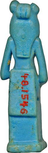 | Keywords: Egyptian - Lioness Headed Goddess - Walters 481546 - Back.jpg The lustrous blue glaze on this example of Egyptian faience a ceramic-like glazed material imitated the tones of turquoise which was imported from the Sinai Peninsula Egyptian faience was inexpensive to produce but the results were so beautiful that it was used for even very prestigious objects The lioness-headed goddess probably Wadjet is seated on a throne her left hand holding a papyrus-scepter in front of her body A loop which clarifies the function of the small statuette as a pendant is behind her back between 664 525 BC Late Period; Saite Egyptian faience with blue glaze cm 5 29 1 42 3 19 accession number 48 1546 11753 Henry Walters Baltimore 1930 mode of acquisition unknown Walters Art Museum Henry Walters Acquired by Henry Walters 1930 place of origin Egypt Walters Art Museum license Ancient Egyptian amulets in the Walters Art Museum Ancient Egyptian faience in the Walters Art Museum Media contributed by the Walters Art Museum needs category review |