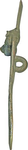 Keywords: Egyptian - Menat with the Heads of the Deities Shu and Tefnut - Walters 541515 - Left.jpg In rituals for the gods special instruments were used by priests and priestesses to invoke the deities or to perform rituals before them One of the most important instruments was the Menat a counterweight that held elaborate beaded collars in place used also as a noise-making ritual instrument by rattling the collar's beads The representation of a broad collar called an Usekh also called an Aegis originally a Greek term for shield surmounted with the head of a deity functioned as a protective symbol This combination of the Menat and Usekh is surmounted by the heads of the divine couple Shu god of the air and Tefnut goddess of moisture and corrosive air They were the first emanations of the primeval god Atum when he created the world The Menat is flanked by cobra serpents; the upper part displays the squatting figure of the ram-headed sun god while the lower part displays an oxyrhynchus fish in a papyrus thicket between 664 380 BC Late Period bronze cm 11 3 5 66 0 94 accession number 54 1515 32265 Sheik of the Pyramids Henry Walters city Baltimore Walters Art Museum Henry Walters Acquired by Henry Walters 1930 Daily Magic in Ancient Egypt The Walters Art Museum Baltimore 2006-2007 place of origin Egypt Walters Art Museum license Ancient Egyptian art in the Walters Art Museum Works of the Egyptian late period Shu Tefnut |