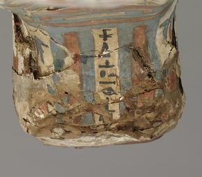 Keywords: Egyptian - Mummy and Painted Cartonnage of an Unknown Woman - Walters 791 - Detail E.jpg Mummification preserved mortal remains in order to house the Ka or life force of the individual as it needed to return to the body to find sustenance The human-shaped covering called cartonnage is composed of layers of linen and plaster Its painted decoration includes the floral wreath on the wig a broad collar and a winged scarab beetle Five additional registers of decoration show the protective four sons of Horus the sacred boat of the funerary-deity Sokar a mummy of Osiris on a funerary bed a divine falcon god and a short hieroglyphic text with an offering formula See the additional media for a facial reconstruction of the mummy courtesy of Michael Brassell as well as a color reconstruction of the cartonnage ca 850 750 BC Third Intermediate mummy in cartonnage with paint cm 167 46 27 5 accession number 79 1 492 Excavated at Deir el-Bahri by the Metropolitan Museum of Art's Egyptian Expedition Winter of 1930-1931 by Ambrose Lansing Metropolitan Museum of Art New York ca 1930-1931 Walters Art Museum 1941 by exchange Museum acquisition by exchange with the Metropolitan Museum of Art 1941 Translation The king gives an offering to Osiris In Search of Ancient Treasure 40 Years of Collecting The Walters Art Gallery Baltimore 1978 Highlights from the Collection The Walters Art Gallery Baltimore 1998-2001 place of origin Deir el-Bahri present-day Western Thebes Egypt Walters Art Museum license Ancient Egyptian sarcophagi in the Walters Art Museum Ancient Egyptian art from Deir el-Bahari Sarcophagi of the Egyptian third intermediate period Media contributed by the Walters Art Museum needs category review Egyptian mummies in the Walters Art Museum |