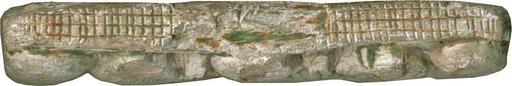 Keywords: Egyptian - Pectoral with Sacred Symbol and Representation of Atum and Re-Harakhte on the Other Side - Walters 4284 - Top.jpg The rectangular pectoral which has two holes for suspension On one side of the pectoral is the solar boat depicted Inside of the boat is the winged scarab as well as the moon disk and crescent combination both are flanked by two standing baboons with adoration gestures On the other side of the plaque there are three image fields On the far left is the god Atum in the center is the solar falcon and on the far right is the god Re-Harakhte Atum is named by the inscription as the Lord of the Sky and the solar falcon as Re-Harakhte Great God and Living Lord of Heliopolis and the falcon-headed god just as Re-Harakhte The sides of the pectoral are decorated with a grid pattern The pectoral was probably produced during the Ramesside Period or the early Third Intermediate Period between 1292 945 BC New Kingdom-early Third Intermediate steatite with remains of green glaze cm 3 71 5 39 0 55 accession number 42 84 28352 Dikran Kelekian New York and Paris date and mode of acquisition unknown Henry Walters city Baltimore Walters Art Museum Henry Walters Acquired by Henry Walters 1925 place of origin Egypt Walters Art Museum license Ancient Egyptian pectorals in the Walters Art Museum Media contributed by the Walters Art Museum needs category review |