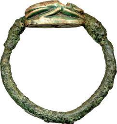 Keywords: Egyptian - Ring with Scarab - Walters 542208 - Right.jpg In this type of ring the scarab bezel is fastened by passing the ends of the bronze hoop pulled out into fine wire through the perforation and twisting them around the hoop on the opposite side The face of the glazed steatite scarab is decorated with a stylized head of the cow-eared goddess Hathor under a cartouche of King Thutmosis III between 1479 1425 BC New Kingdom steatite with glaze bronze cm 0 4 0 8 1 1 ; Inner Diam cm 2 2 ; Outer Diam cm 2 5 accession number 54 2208 11094 Henry Walters city Baltimore Walters Art Museum Henry Walters Acquired by Henry Walters 1929 Translation Men-kheper-Re Jewelry - Ancient to Modern The Walters Art Gallery Baltimore 1979-1980 place of origin Egypt Walters Art Museum license Ancient Egyptian scarabs in the Walters Art Museum Ancient Egyptian finger rings in the Walters Art Museum Media contributed by the Walters Art Museum needs category review |