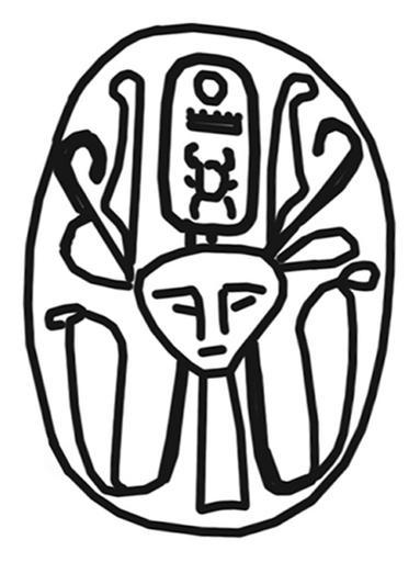 Keywords: Egyptian - Ring with Scarab - Walters 542208 - Impression.jpg In this type of ring the scarab bezel is fastened by passing the ends of the bronze hoop pulled out into fine wire through the perforation and twisting them around the hoop on the opposite side The face of the glazed steatite scarab is decorated with a stylized head of the cow-eared goddess Hathor under a cartouche of King Thutmosis III between 1479 1425 BC New Kingdom steatite with glaze bronze cm 0 4 0 8 1 1 ; Inner Diam cm 2 2 ; Outer Diam cm 2 5 accession number 54 2208 11094 Henry Walters city Baltimore Walters Art Museum Henry Walters Acquired by Henry Walters 1929 Translation Men-kheper-Re Jewelry - Ancient to Modern The Walters Art Gallery Baltimore 1979-1980 place of origin Egypt Walters Art Museum license 2D Ancient Egyptian scarabs in the Walters Art Museum Hieroglyphs on scarabs Ancient Egyptian finger rings in the Walters Art Museum Cartouches of Thutmosis III Scarabs of Thutmosis III |