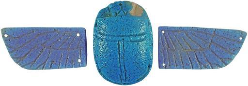 | Keywords: Egyptian - Scarab with Spread Wings - Walters 421430 - Back.jpg Scarabs were modeled on the dung beetle Scarabaeus sacer The Egyptians associated these insects with the young sun-god Kheper who like the scarab was believed to be self created Images of winged scarabs were placed on the chest of the mummy to facilitate its rebirth in the afterworld between 756 655 BC Third Intermediate Egyptian faience light beige; glaze blue cm 1 4 3 7 5 3 accession number 42 1430 23913 Mr and Mrs Hugo Weisgall date and mode of acquisition unknown Walters Art Museum Gift of Mr and Mrs Hugo Weisgall 1948 In Search of Ancient Treasure 40 Years of Collecting The Walters Art Gallery Baltimore 1978 Faience The Colors of the Heavens The Walters Art Museum Baltimore; The Walters Art Museum Baltimore 2003-2004 place of origin Egypt Walters Art Museum license Ancient Egyptian scarabs in the Walters Art Museum Ancient Egyptian pectorals in the Walters Art Museum Media contributed by the Walters Art Museum needs category review |