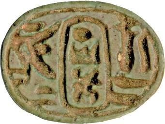Keywords: Egyptian - Scarab with the Throne Name of Thutmosis III - Walters 4268 - Bottom (2).jpg This glazed steatite scarab is linearly incised with very deep detailed lines and has a sunk relief inscription on the flat bottom The back of the scarab is executed with average workmanship but the bottom design is poorly made This scarab functioned as an individualized amulet and was originally mounted or threaded The amulet should ensure for its owner support by the royal authority of the divine king Thutmosis III as well as divine protection The scarab was produced after the death of Thutmosis III 1479-1425 BC The names and titles of Thutmosis III were used also in later periods; the Egyptians saw him as a protective god of kinship and his names and titles as powerful magical elements The additional reading of his throne name as Amun increased the power of this amulet between 1292 1070 BC New Kingdom grey-brown steatite with blue-green glaze cm 0 7 1 2 1 6 accession number 42 68 24291 Henry Walters Baltimore date and mode of acqusition unknown Walters Art Museum Henry Walters Acquired by Henry Walters Translation The Perfect God Lord of the Two Lands / Men-kheper-Re / protected/beloved by the Mistress of the Sky place of origin Egypt <gallery> File Egyptian - Scarab with the Throne Name of Thutmosis III - Walters 4268 - Bottom jpg </gallery> Walters Art Museum license Ancient Egyptian scarabs in the Walters Art Museum Cartouches of Thutmosis III Scarabs of Thutmosis III Media contributed by the Walters Art Museum needs category review |