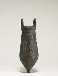 Keywords: Egyptian - Situla with Procession of Divinities and Worshippers - Walters 541208 - Back.jpg Situlae were vessels used to pour offerings of milk or water in purification rituals They take the form of a human breast and were associated with the goddess Isis Incense burners were also used extensively in temple and funerary ceremonies Incense considered a purifying element was offered to honor the gods kings and the dead This situla is decorated in raised relief The central frieze depicts a series of striding deities and worshipers The base features a lotus petal motif a symbol of rebirth ca 300 30 BC Greco-Roman bronze cm 20 6 7 3 accession number 54 1208 22421 Henry Walters Baltimore by purchase Walters Art Museum Henry Walters Acquired by Henry Walters place of origin Egypt Walters Art Museum license Ancient Egyptian art in the Walters Art Museum Media contributed by the Walters Art Museum needs category review Situla |