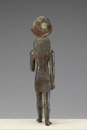 Keywords: Egyptian - Statue of a Standing Khonsu - Walters 54395 - Back.jpg Khonsu could be represented either as a youth or a falcon-headed male with a moon-disk and crescent on his head as here He is mentioned as a moon god in the pyramid texts as early as the 3rd millennium BC As the son of Amun and Mut he was worshipped in Karnak where he had his own temple from the Middle Kingdom onwards ca 664 525 BC Late Period bronze with gold and glass inlay cm 28 5 5 7 8 2 accession number 54 395 1730 Dikran Kelekian New York and Paris date and mode of acquisition unknown Henry Walters city Baltimore Walters Art Museum Henry Walters Acquired by Henry Walters 1912 place of origin Memphis Egypt Walters Art Museum license Ancient Egyptian statues in the Walters Art Museum Statues of the Egyptian late period Media contributed by the Walters Art Museum needs category review Rear views of statues |