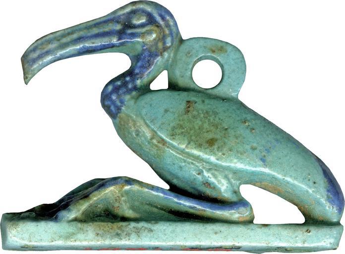 Keywords: Egyptian - Thoth-Ibis - Walters 481681 - Left.jpg The Ibis was the sacred bird of Thoth patron deity of scribes and writing and god of wisdom Thoth recorded the results of the judgment of the deceased in the underworld in a ceremony called the weighing of the heart Wearing the amulet placed the deceased under the protection of the god This amulet displays a recumbent Ibis on a base with a loop on the back directly behind its head ca 320 250 BC early Greco-Roman Egyptian faience with blue and green glaze cm 2 45 0 65 3 4 accession number 48 1681 26193 Henry Walters Baltimore date and mode of acquisition unknown Walters Art Museum Henry Walters Acquired by Henry Walters place of origin Egypt Walters Art Museum license Ancient Egyptian amulets in the Walters Art Museum Ancient Egyptian faience in the Walters Art Museum Ancient Egyptian jewellery in the Walters Art Museum Thoth amulets Amulets of Greco-Roman Egypt |