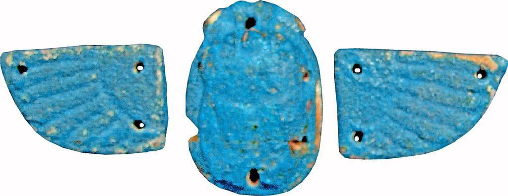 Keywords: Egyptian - Winged Naturalistic Scarab - Walters 421448 - Back.jpg This faience winged scarab has a flat underside without a bottom design or drill-holes The design on the scarab's back is very simple It has a rough and uneven surface balanced proportions no evidence of extremities or partition lines and rough workmanship The piece is poorly made The scarab functioned as a funerary amulet and would have been attached to mummy bandages Winged scarabs should assure the renewal of the deceased by meeting the sun god in the afterlife Winged scarabs were the central part of the amulet set of a mummy century 6 4 BC Late Period-early Greco-Roman light beige faience with blue glaze Scarab cm 1 18 3 1 4 3 ; Wing cm 1 1 2 8 4 accession number 42 1448 37269 William Shirley date and mode of acquisition unknown Walters Art Museum Gift of William Shirley 1963 place of origin Egypt Walters Art Museum license Ancient Egyptian scarabs in the Walters Art Museum Ancient Egyptian pectorals in the Walters Art Museum Media contributed by the Walters Art Museum needs category review |