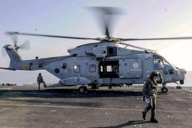 | Keywords: EH 101 Italian Navy on the flight of the amphibious assault ship USS Boxer.jpg en 131219-N-QP351-117 ARABIAN GULF Dec 19 2013 An Italian marine EH-101 Merlin helicopter crew member crosses the flight deck aboard the amphibious assault ship USS Boxer LHD 4 after a fast-rope exercise Boxer is the flagship for the Boxer Amphibious Ready Group and with the embarked 13th Marine Expeditionary Unit is deployed in support of maritime security operations and theater security cooperation efforts in the U S 5th Fleet area of responsibility U S Navy photo by Mass Communication Specialist 3rd Class J Michael Schwartz/Released 2013-12-19 09 23 31 https //www flickr com/photos/navcent/12713818274/in/photolist-kntDem U S Navy photo by Mass Communication Specialist 3rd Class J Michael Schwartz/Released other versions ww2censor 12 52 1 January 2017 UTC cc-by-2 0 PD-USGov-Navy 2-21 aircraft USS Boxer LHD-4 |