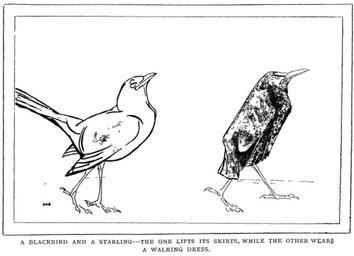 Keywords: Eha starling caaom.png A blackbird and a starling ” The one lifts its skirts while the other wears a walking dress Illustration in Edward Hamilton Aitken Concerning animals and other matters Starling and blackbird PD-old Blackbirds in art Starlings in art Edward Hamilton Aitken